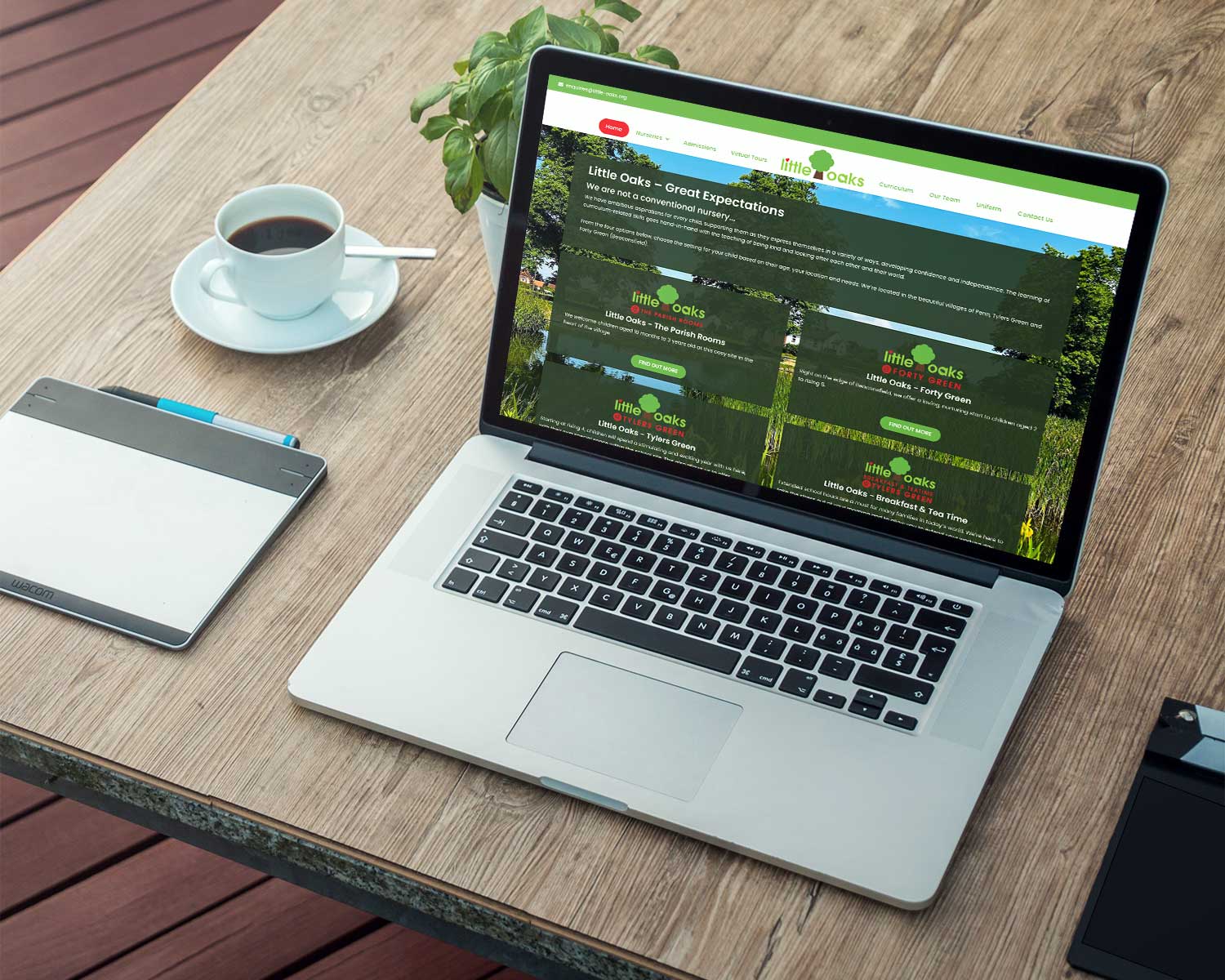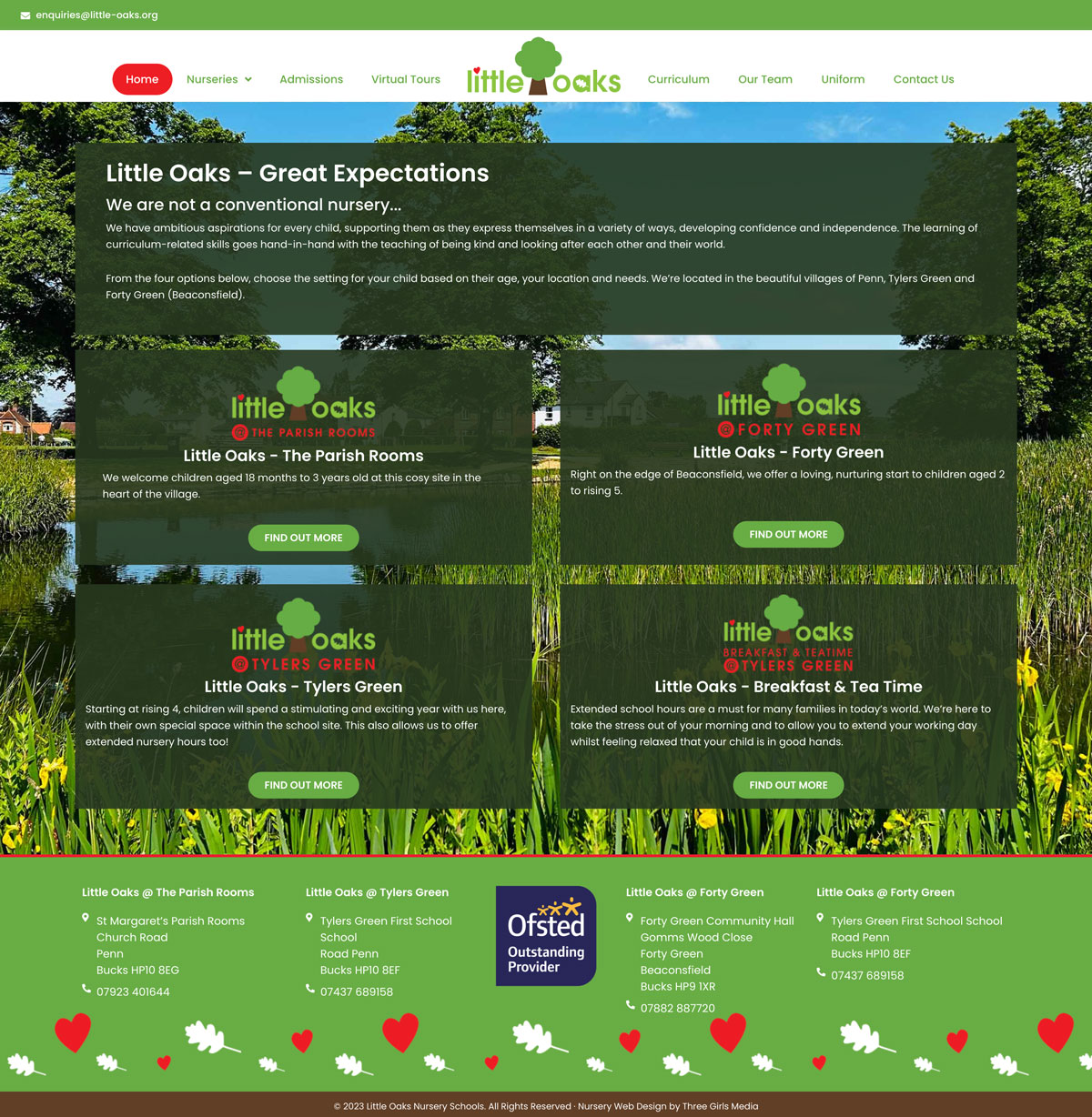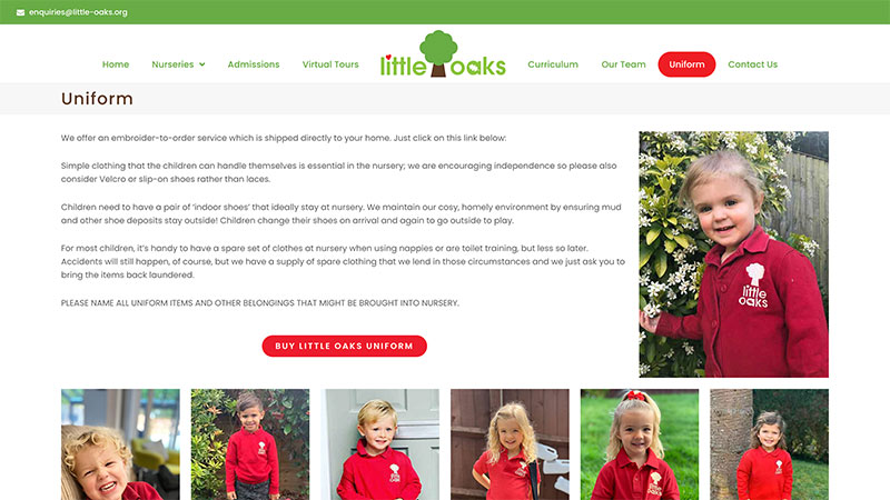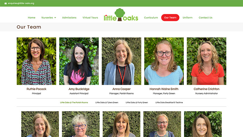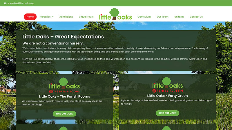 Ruthie was in the process of acquiring her fourth nursery as part of the Little Oaks group, and wanted to merge two outdated websites. She had a great logo in place, and wanted to emphasise the focus that her nurseries place on education and the outdoors. As all of the nurseries are within a small catchment area, she also wanted to be able to show the physical relationship between them all.
