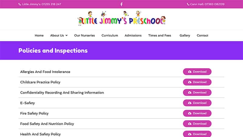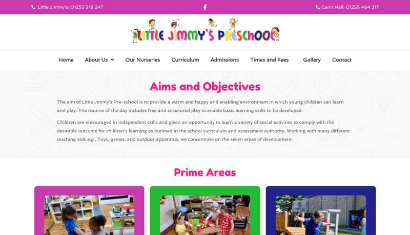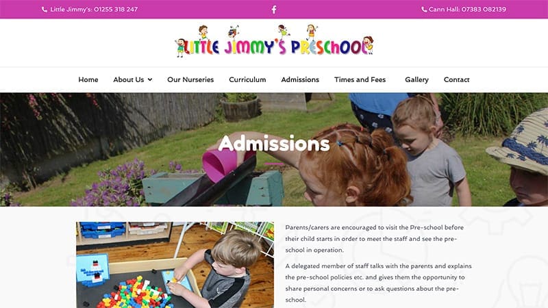 Web design for Little Jimmy's Preschool