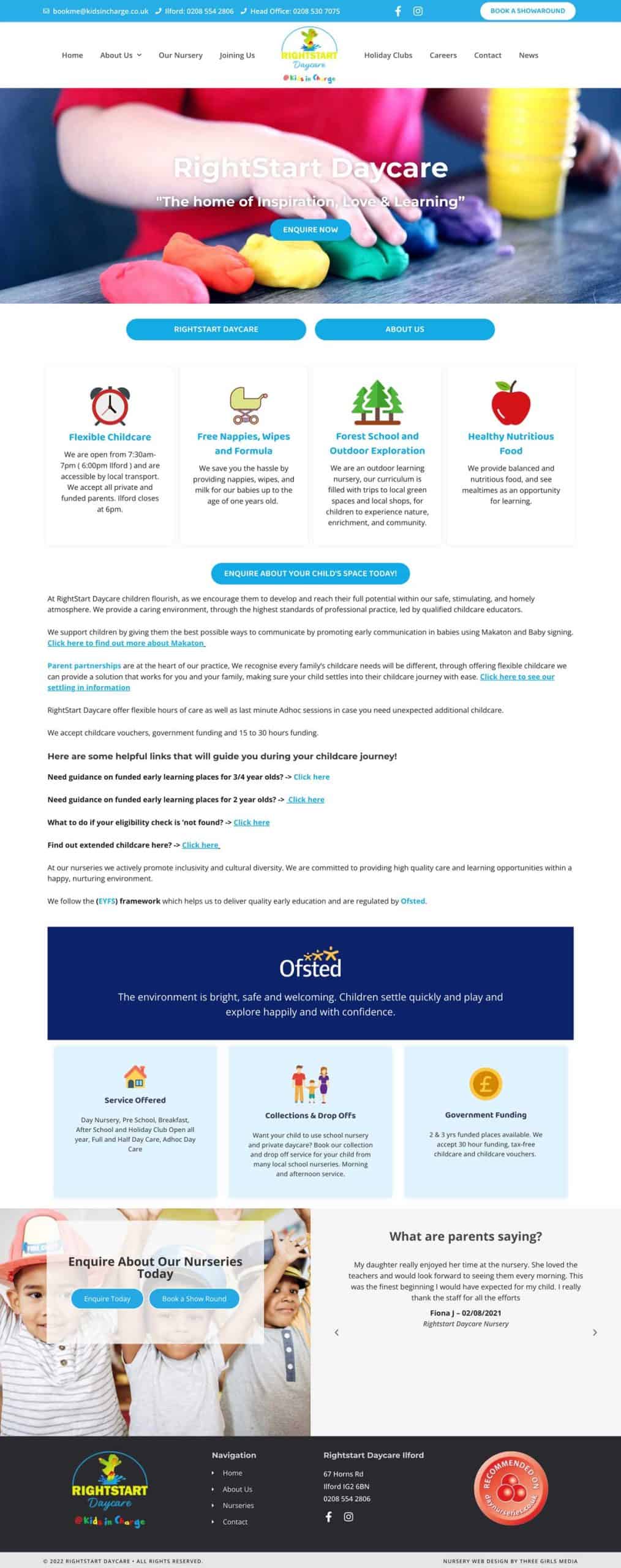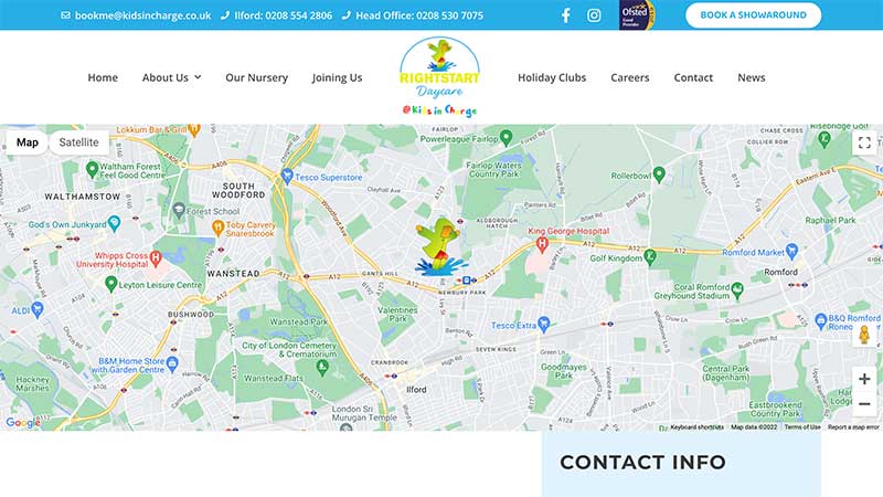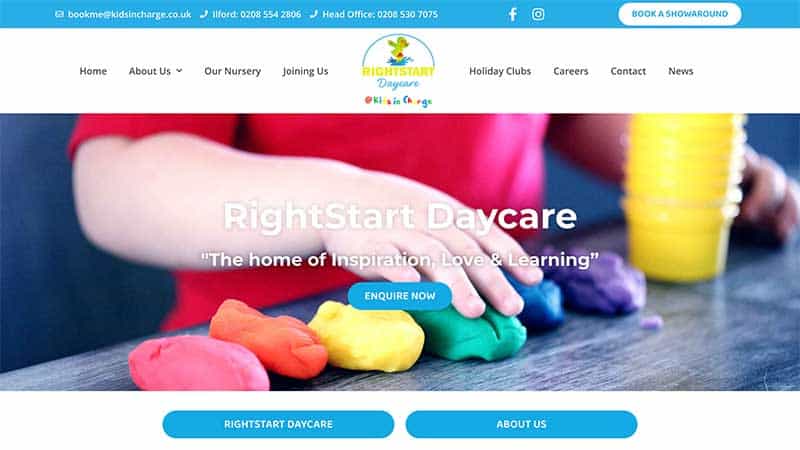 The new website for Rightstart is super clean and modern and provides headline information designed to get visitors to book a tour but also includes a wealth of more detailed information if visitors want to dig deeper.  There are also links to all of the programs offered by Kids in Charge